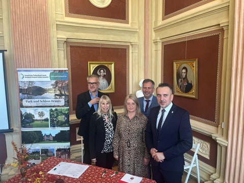 Die Steuerungsgruppe des Projektes „Inwertsetzung Parkverbund“ hat sich am 25. Oktober 2024 in der Schlossorangerie des Herzoglichen Parks in Zatonie im Rahmen des neuen Kooperationsprogramms INTERREG VI A Brandenburg-Polen 2021-2027 getroffen, um eine Partnerschaftsvereinbarung zwischen den beteiligten Projektpartnern zu unterzeichnen.